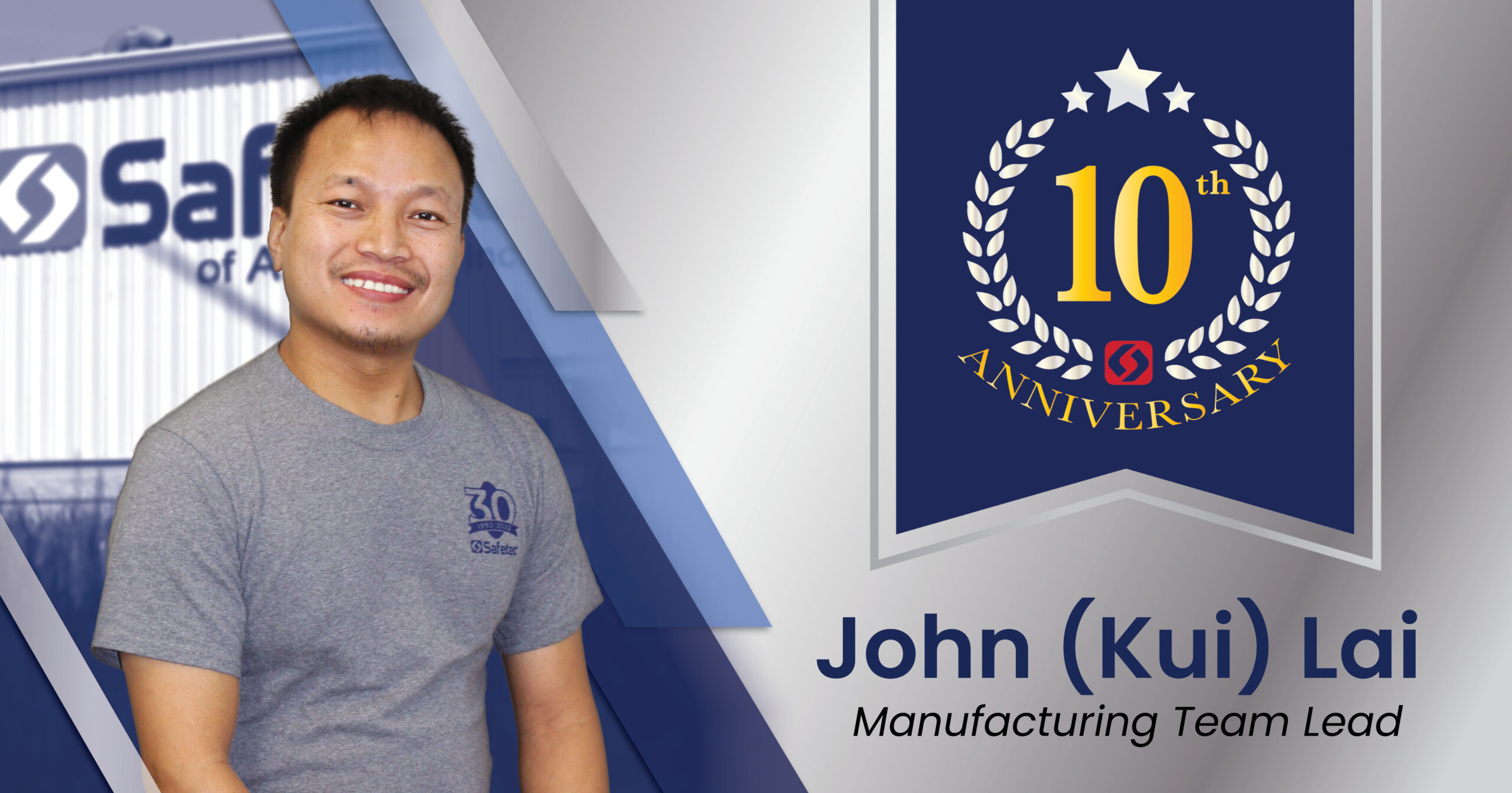 With that being said, we’d like to take this opportunity to congratulate one of our teammates, John (Kui) Lai, on his 10th anniversary at Safetec! Safetec of America was John’s first job since coming to America 10 years ago from Burma.