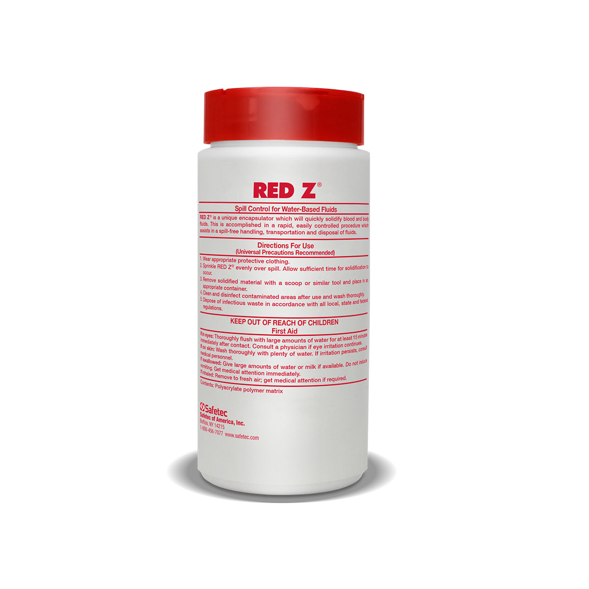 Experience effortless and efficient infectious blood or body fluid waste cleanup with Safetec’s 11 oz. Red Z® Solidifier in a Shaker Top Bottle. This innovative shaker top design allows for controlled dispensing of the solidifying agent, easily transforming liquid into a gel-like substance. Ideal for medical settings, the shaker top ensures a quick and uniform distribution of the solidifier over spills, facilitating a prompt response to minimize risk. Not only does it provide a crucial safety measure to keep healthcare workers and patients safe, but it also contains chlorine to deodorize smells. Trust in the simplicity, effectiveness, and precise application of Safetec’s 11 oz. Red Z® Solidifier in a Shaker Top Bottle for seamless infectious or hazardous waste cleanup.