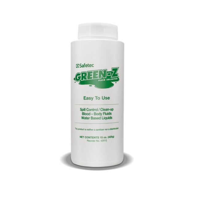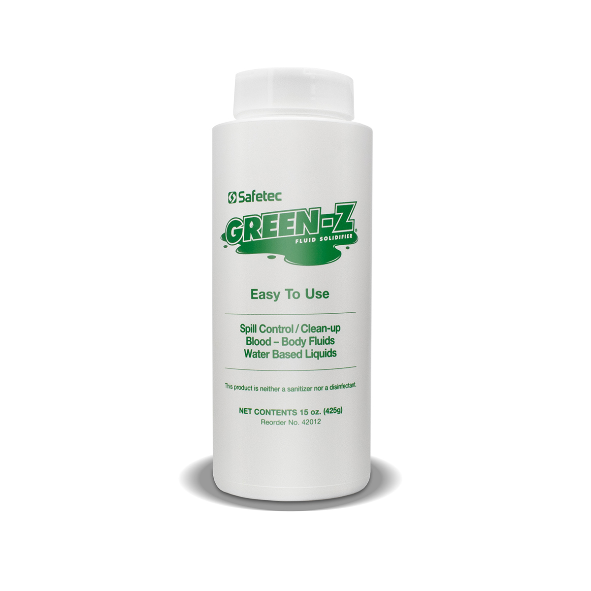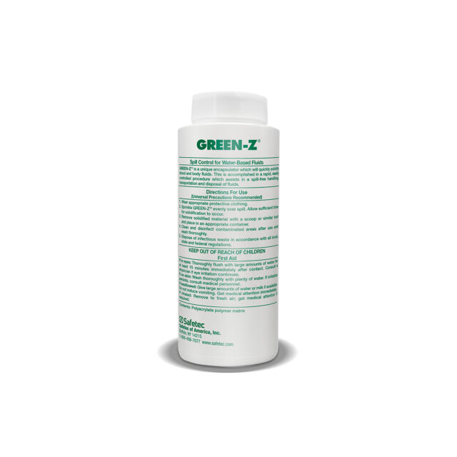 Experience effortless and efficient infectious or hazardous waste cleanup with Safetec’s 15 oz. Green-Z® Solidifier in a Shaker Top Bottle. This innovative shaker top design allows for controlled dispensing of the solidifying agent, easily transforming liquid into a gel-like substance. Ideal for medical settings, the shaker top ensures a quick and uniform distribution of the solidifier over spills, facilitating a prompt response to minimize potential harm or contamination. The controlled application not only reduces waste, but Green-Z® does not containt chlorine, making it a safe option for the cleanup of certain chemicals.