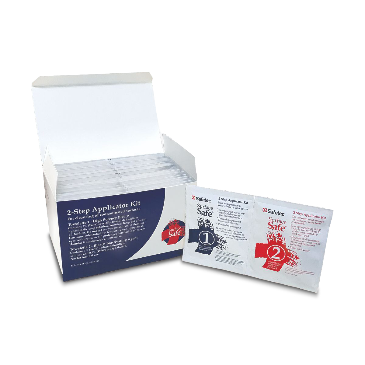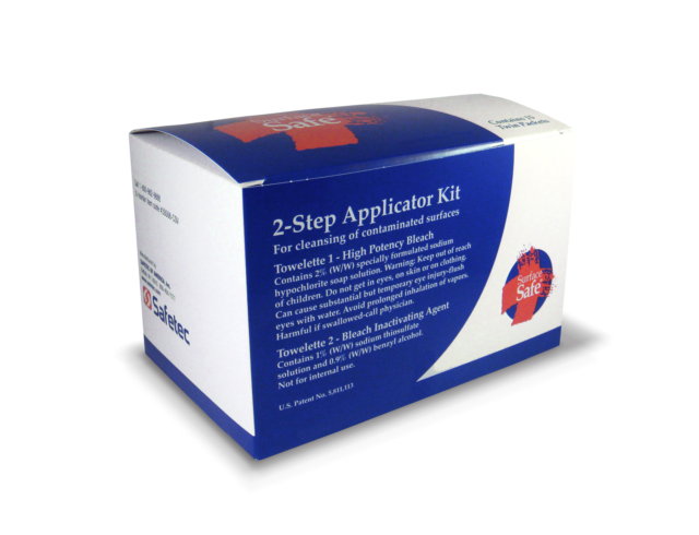 Surface Safe® is a two-step applicator kit that cleans and deactivates chemotherapy drugs on work surfaces to provide a cleaner, safer work environment. The kit contains two different wipes that are individually packaged in numbered packets to help ensure safe cleanup is completed in the correct order. Each towelette is 5.5” x 11” in size and can treat approximately 2 sq. ft.